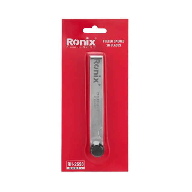 برای خرید هر محصولی باید به ویژگی‌های آن توجه کنید. در ادامه مشخصات آچار فیلر رونیکس را بررسی می‌کنیم تا انتخابی آگاهانه داشته باشید. آچار فیلر RH-2698 با 20 عدد گیج ساخته شده از استیل برای تشخیص و تنظیم لقی بین سطوح، مثل محل احتراق، شمع خودرو، سوراخ‌ها، پیستون، رینگ پیستون و غیره مورد استفاده قرار می‌گیرد.