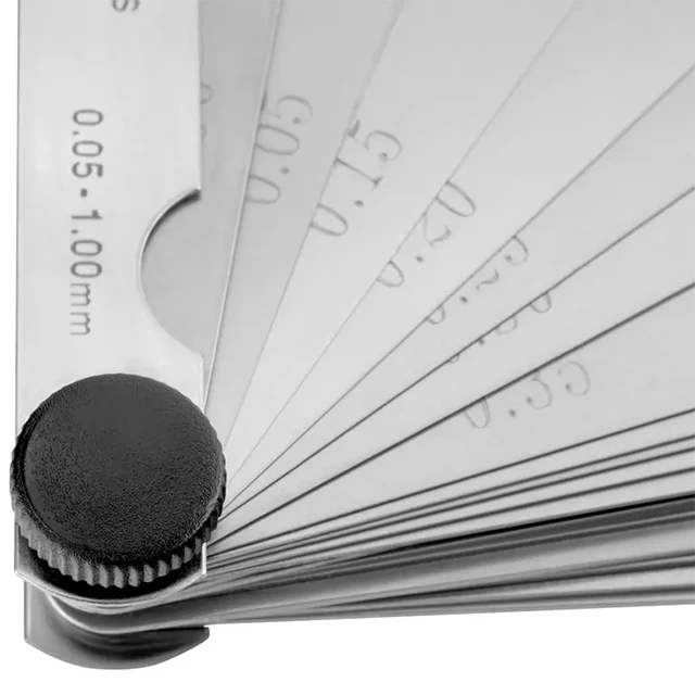 20 تیغۀ این ابزار از 0.05 تا یک میلی‌متر را اندازه‌گیری می‌کند. سایز تیغه‌ها به تفکیک شامل 0.05، 0.10، 0.15، 0.20، 0.25، 0.30، 0.40، 0.45، 0.50، 0.55، 0.60، 0.65، 0.70، 0.75، 0.80، 0.85، 0.90، 0.95، 1.00 میلی‌متر می‌شود.