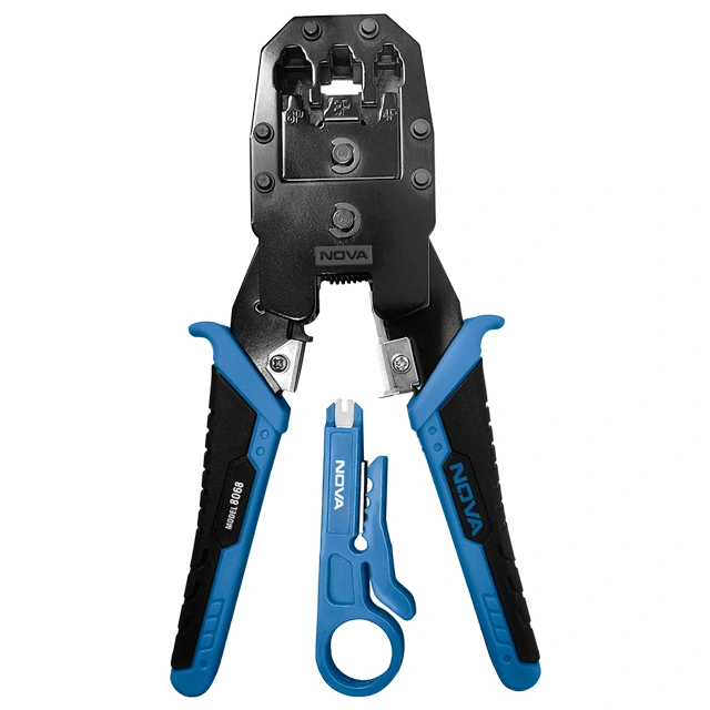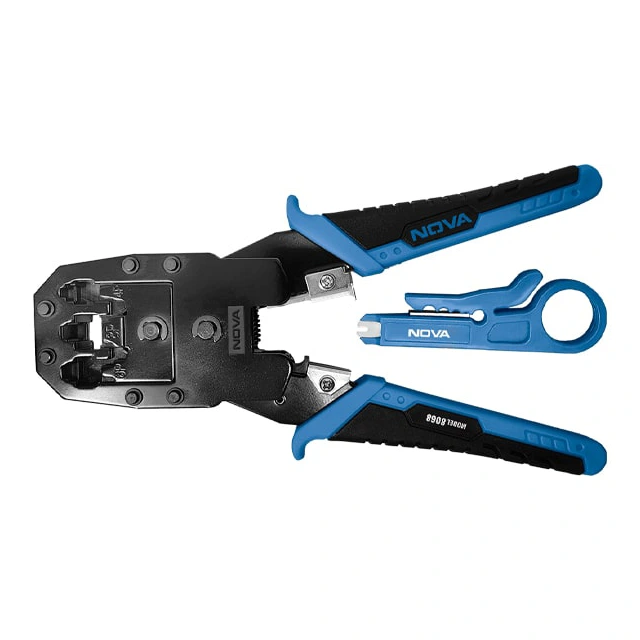 انبر سوکت زن تلفن و شبکه نووا مدل 8068، ابزاری حرفهای و چندمنظوره برای پرس، برش و لختکردن کابلهای تخت و گرد است. این ابزار برای سوکتهای شبکه RJ45 (8P8C) و سوکتهای تلفن RJ11/RJ12 (6P4C/6P6C) طراحی شده و با دقت بالای فکها، پرس یکنواخت و استانداردی را ارائه میدهد. بدنه ساختهشده از فولاد مقاوم A3، دوام و عملکرد طولانیمدت ابزار را تضمین میکند.