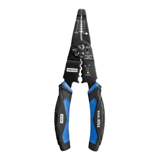 انبر سیم لخت کن چندکاره 7 اینچ نووا مدل 8054، ابزار دستی چندمنظورهای است که از آن برای برداشتن عایق سیمها تا قطر 2.6 میلیمتر، برش کابل و سیم تا قطر 2.6 میلیمتر و پرسکردن سر سیمها استفاده میشود. این محصول پرکاربرد نووا در بخش مونتاژ، تعمیرات صنایع الکترونیکی و برش خطوط قدرت، عملکرد ایدهآلی را از خود نشان میدهد.