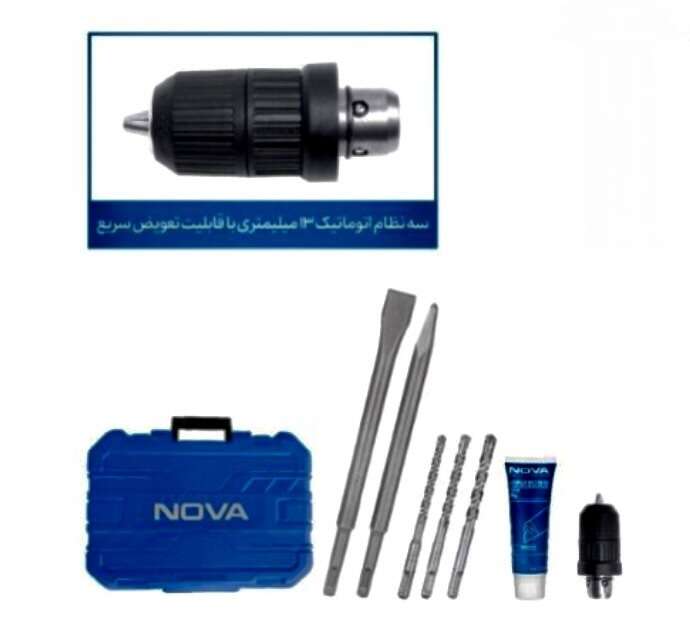 دریل بتن کن سه حالته 26 میلیمتری 800 وات (با سه نظام اضافه) نووا مدل 2427