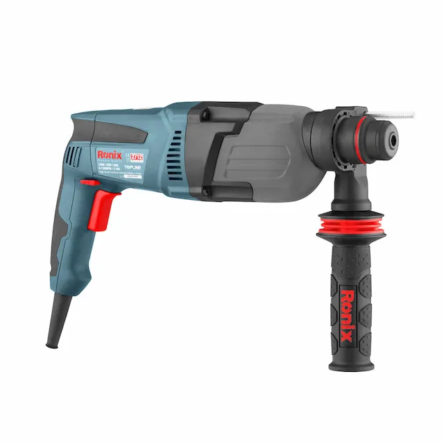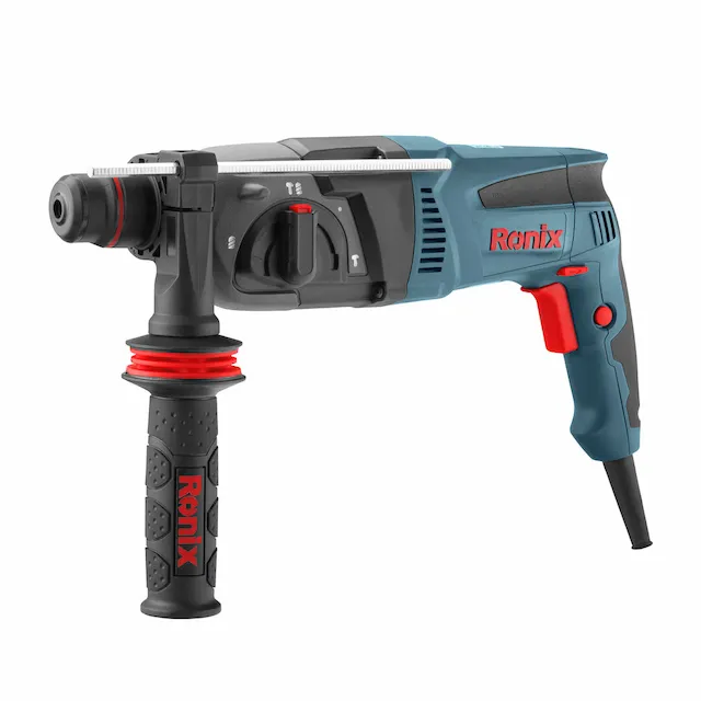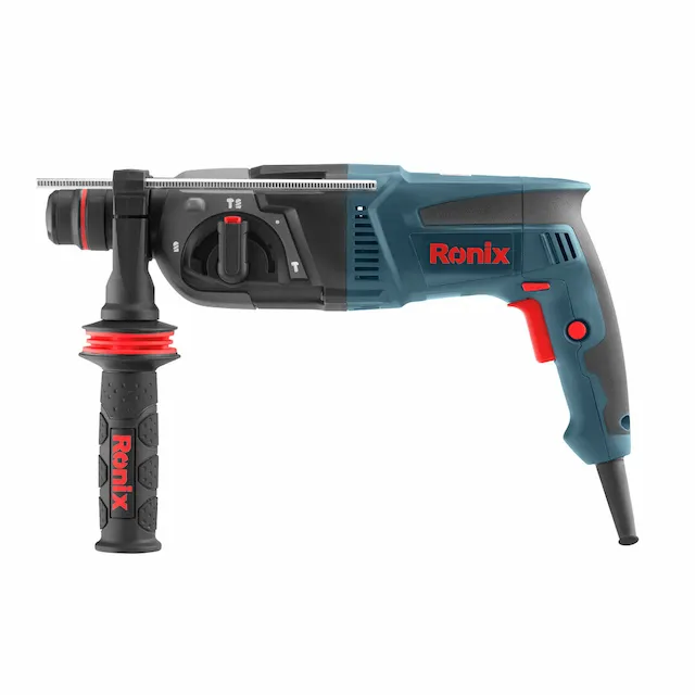 • دریل بتن‌کن قدرتمند با 4 عملکرد: سوراخ‌کاری، ضربه‌ای، ضربه‌ای همراه با چرخش، و قلم‌زنی. دسته کمکی با طراحی 360 درجه Ronix برای کنترل بهتر.