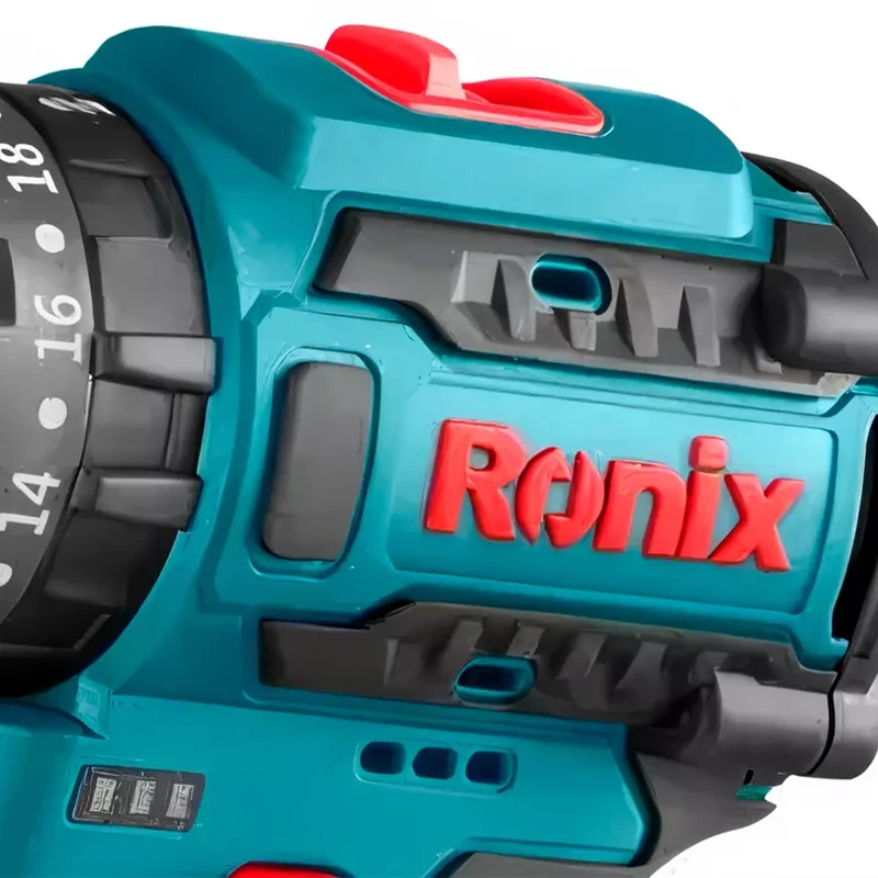 دریل پیچ گوشتی شارژی تاپ لاین 8661 رونیکس مجهز به کلید گازی ضد غبار، کلید تنظیم عملکرد چپ‌گرد/راست‌گرد و کلید سرعت دو حالته است.