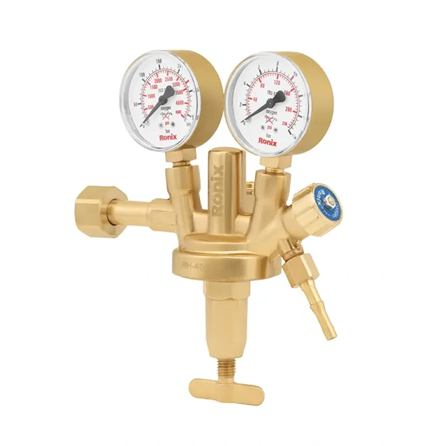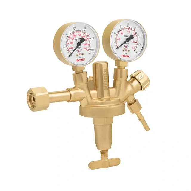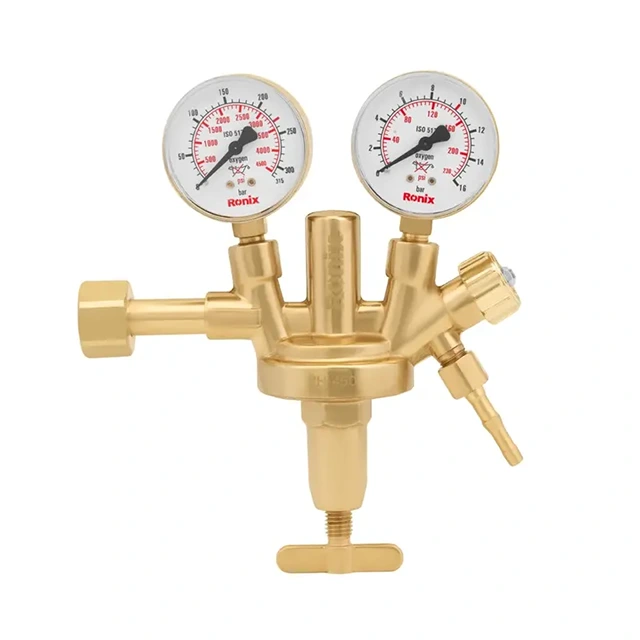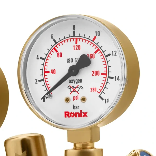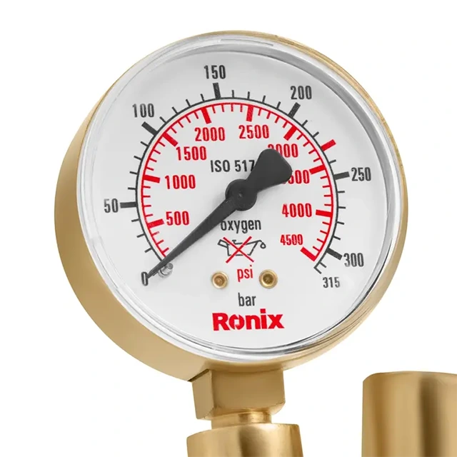 برای کنترل و تنظیم فشار گاز اکسیژن، از مانومتر استفاده میشود. مانومتر اکسیژن طرح زینسر رونیکس مدل RH-4504 دارای نشانگر تنظیم اکسیژن است و بهراحتی میتوانید فشار گاز را با آن تنظیم کنید. این مانومتر برای انواع گاز اکسیژن قابل استفاده است و حملونقل آن آسان است؛ همین ویژگیها، این مانومتر را به انتخابی کاربردی تبدیل کرده است. مانومتر اکسیژن رونیکس دارای دو گیج برای نمایش دقیق فشار ورودی و خروجی، که حداکثر فشار ورودی را تا 315 بار و فشار خروجی را تا 16 بار نشان میدهند. بدنه این مانومتر از آلیاژ برنج با کیفیت بالا ساخته شده که استحکام و دوام بالایی را در حین کاربری فراهم میکند.