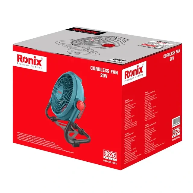 پنکه 8626 رونیکس در جعبه رنگی و با یک عدد باتری و یک شارژر به بازار ابزار ایران عرضه شده است.