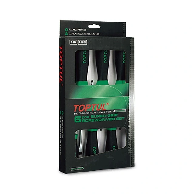 پیچ گوشتی جعبه ایی دوسو و چهارسو PZ تاپ تول شامل 4 عدد پیچ گوشتی دوسو و 2 عدد پیچ گوشتی چهارسو پی زد با دسته ای راحت و تیغه فولادی گرد می باشد.