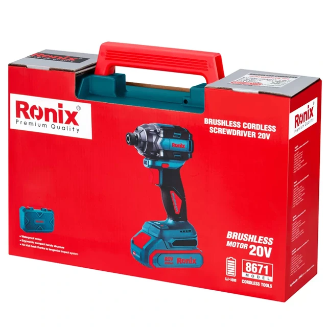 این پیچگوشتی شارژی رونیکس مجهز به موتور قدرتمند براشلس است که گشتاور 230 نیوتنمتر و سرعت 3300 دور در دقیقه را برای بستن و بازکردن انواع پیچها ایجاد میکند. همچنین، نرخ ضربه در این پیچگوشتی شارژی برابر با 4500 ضربه بر دقیقه است.