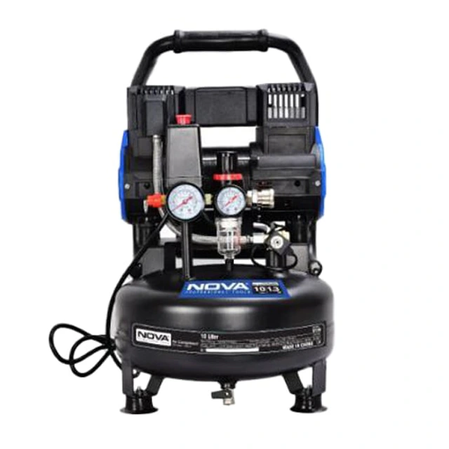 کمپرسور باد سایلنت 10 لیتری نووا مدل 9110، پمپ باد کم صدا و بدون روغن (Oil-Free) است که برای استفاده در کارگاههای کوچک، تعمیرگاهها و مصارف نیمه حرفهای طراحی شده است. این کمپرسور با بهرهگیری از موتور با سیم پیچی تمام مسی، واحد مراقبت هوا و سیستمهای ایمنی کنترلی، ترکیبی از کارایی بالا، طول عمر مناسب و سهولت استفاده را در ابعادی کامپکت ارائه میدهد. به همین دلیل میتوان آن را گزینهای ایدهآل برای کاربرانی دانست که به دنبال دستگاهی مطمئن و کم دردسر برای انجام امور روزمره هستند.