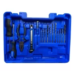 ۲ عدد پیچ گوشتی (- +) یک عدد انبر دست یک عدد کاتر یک عدد آچار فرانسه، ۱۱ عدد مته دریل، فازمتر یک عدد چکش متر سه متری