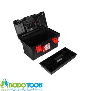 طراحی این جعبه ابزار آروا به گونه ای می باشد که دارای فضای بسیار مناسب برای قرار دادن ابزارآلات می باشد . مقاوم است و دارای قفل پلاستیکی بسیار محکم جهت بستن درب آن می باشد.